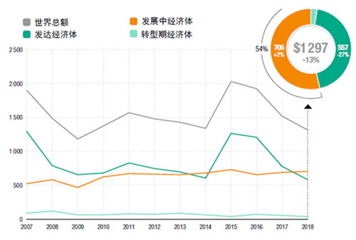 圖13 2007-2018全球和經濟體集團外國直接投資流入量