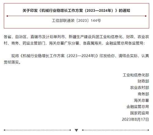 政策解讀|《機械行業(yè)穩(wěn)增長工作方案(2023—2024年)》
