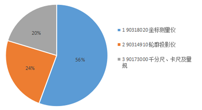 量具和量儀進口分類(圖中比例為金額占比)