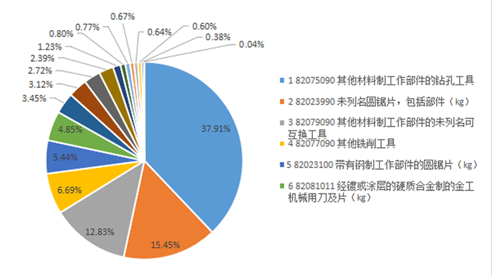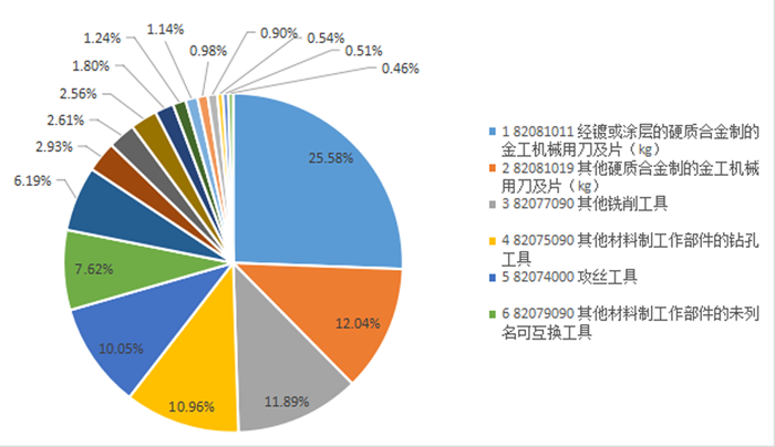 刀具進口分類(圖中比例為金額占比)