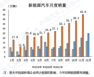 中國汽車工業(yè)協(xié)會最新數(shù)據顯示,202111月,汽車產銷環(huán)比延續(xù)了增長勢頭,同比依然下降。9月以來月度產銷環(huán)比持續(xù)增長,汽車市場總體呈現(xiàn)一定回暖跡象,預計12月產銷有望延續(xù)環(huán)比增長勢頭,全年產銷將超過2600萬輛,同比小幅增長,其中新能源汽車全年產銷有望雙雙超過340萬輛。