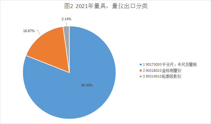 表2 2021年量具、量儀出口分類