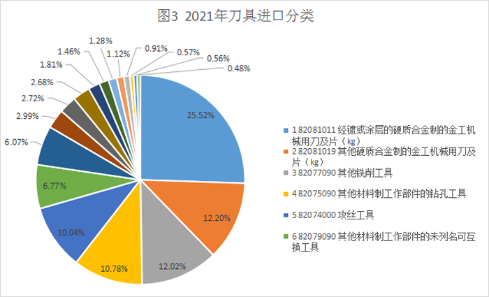 表3 2021年刀具進口分類