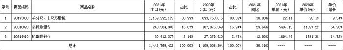 表8 2021年量具、量儀出口占比及增長
