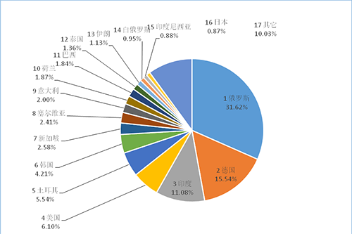 涂層刀片出口目的地主要為:俄羅斯31.62%,德國15.54%,印度11.08%,美國6.10%,土耳其5.54%,韓國4.21%,新加坡2.58%。非涂層刀片出口目的地主要為:俄羅斯23.33%,印度11.25%,日本9.68%,美國9.39%,德國8.88%,新加坡7.86%,墨西哥4.28%。