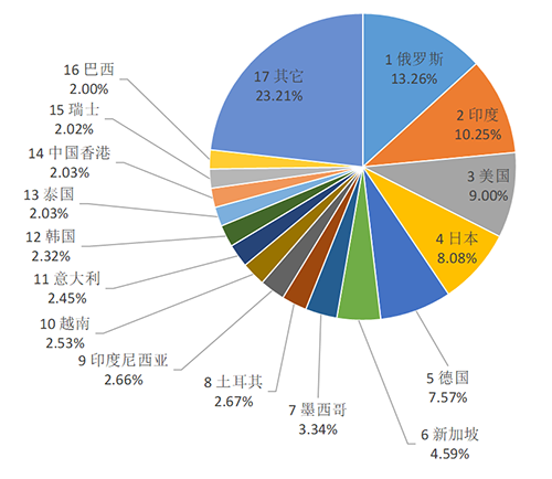涂層刀片出口目的地主要為:俄羅斯32.19%、德國14.66%、印度11.70%、美國5.88%、土耳其5.51%、韓國3.74%、新加坡2.73%。非涂層刀片出口目的地主要為:俄羅斯13.26%(比今年1-6月的占比23.33%明顯下降)、印度10.25%、美國9.00%、日本8.08%、德國7.57%、新加坡4.59%、墨西哥3.34%?