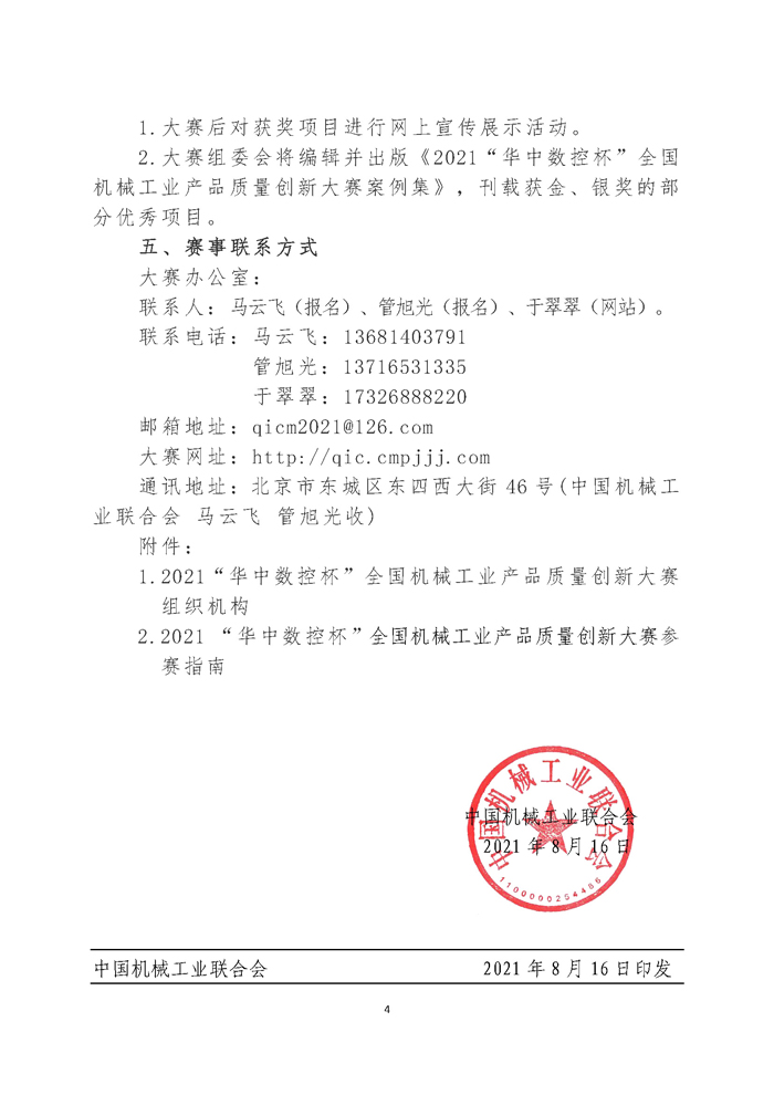 關于組織開展2021 “華中數控杯”首屆全國機械工業產品質量創新大賽的通知