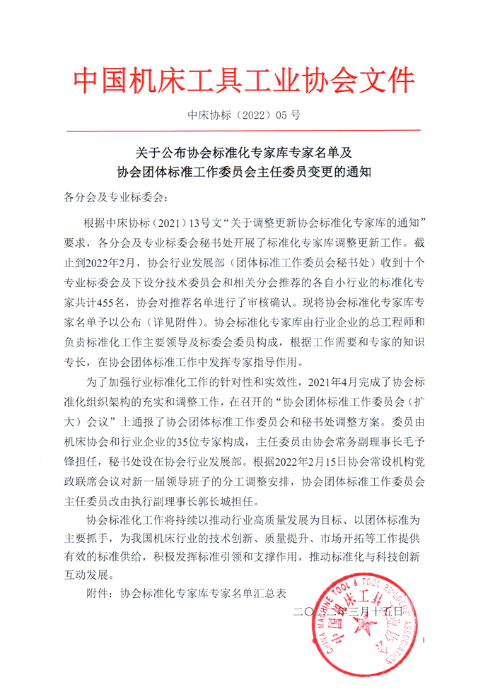 關于公布協會標準化專家庫專家名單及協會團體標準工作委員會主任委員變更的通知