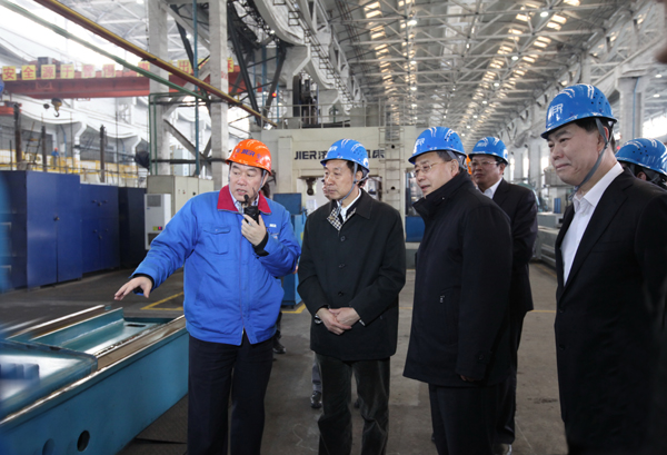 4月9日下午,國務委員王勇在山東省委副書記、省長郭樹清,濟南市委副書記、市長楊魯豫等領導陪同下到濟南二機床集團有限公司調研指導,了解企業發展和生產經營情況,聽取意見和建議。濟二董事長張志剛匯報了企業近期生產形勢,以及依靠技術創新贏得市場、依靠人才強企的做法和取得的成績。王勇給予較高評價,稱贊濟二“在經濟下滑的整體形勢下,志氣不短,瞄準國際一流目標,走出了創新發展之路,取得顯著成效,為中國制造業企業、為中國國有企業創造了典型,樹立了榜樣!”