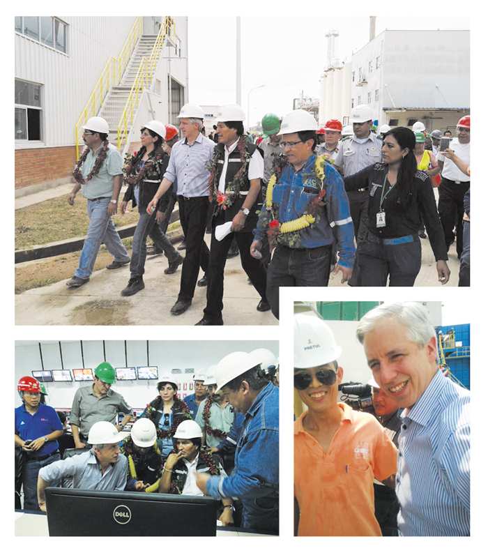 王芳雄說,剛到玻利維亞的第二天,正趕上圣布埃納文圖拉糖廠舉行盛大的慶祝儀式。自己正在安裝調(diào)試機床時,玻利維亞總統(tǒng)帶領(lǐng)的視察團隊已靜靜站在了身后。“看到很多人圍攏到我的工作現(xiàn)場,我當(dāng)時愣住了,以為發(fā)生了什么事……”,后經(jīng)隨行翻譯解釋是總統(tǒng)在視察,緊張的心情才有所放松。我非常高興,表示想與總統(tǒng)先生合影留念。盡管語言不通,但從翻譯人員只言片語的詞匯里聽到了“中國good星火good的贊嘆,并最終實現(xiàn)了和總統(tǒng)先生合影的愿望。那個瞬間,自己真正感受到祖國母親的偉大,感受到了星火公司的親切。