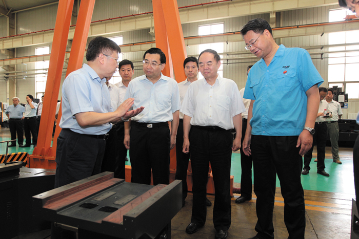 在重型聯(lián)合車間,龍興元詳細(xì)匯報了公司在“三航兩機(jī)”產(chǎn)業(yè)領(lǐng)域自主研發(fā)的高檔制造裝備,以及公司打造“三航兩機(jī)”關(guān)鍵零部件制造基地的情況。