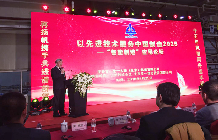 2018125日,在北一大隈(北京)機床有限公司成立15周年的日子里,“智能制造應用論壇”在其工廠舉辦。論壇邀請了中國工程院院士盧秉恒,日本機床協會會長、日本大隈(OKUMA)株式會社代表取締役社長花木義麿先生,國家“智能制造”專項專家組成員、相關社團組織、北京市科委、順義區政府、企業及媒體代表共計100余人。中國機床工具工業協會毛予鋒常務副理事長、王黎明秘書長、郭長城執行副理事長及相關部室代表受邀參會。北一機床黨委書記、董事長王旭主持論壇,北一大隈總經理北河勝義致歡迎詞,花木社長和盧秉恒院士分別發表了主題演講。
