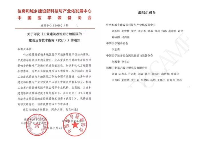 中央赴湖北指導組武漢專題會指出,應盡量多利用對城市居民生活影響小的標準廠房進行改造配套建設,加快和優化方艙醫院合理布局。為此,中機六院積極承擔住建部科技與產業發展中心安排的緊急任務,迅速成立了以黨員為主的工作組,組織開展標準廠房等工業建筑改造為方艙醫院的建設運營技術指南編制工作。經過與國內近百位權威專家的溝通,歷經七個日夜的奮戰,《技術指南》最終獲得專家組一致認可并通過評審。