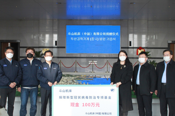 為支援疫情防控工作,斗山機(jī)床向煙臺(tái)開發(fā)區(qū)管委捐贈(zèng)100萬元現(xiàn)金,并承諾至今年年底向疫情最嚴(yán)重的湖北地區(qū)免費(fèi)提供售后服務(wù)及常用易損件的特別政策,為取得疫情防控阻擊戰(zhàn)的最終勝利貢獻(xiàn)力量。