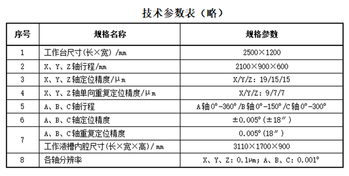 機床部分技術參數見下表。