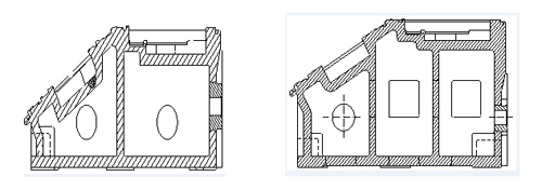5 改進(jìn)前床身結(jié)構(gòu)              6  改進(jìn)后床身結(jié)構(gòu)