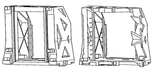 對(duì)機(jī)床立柱的箱體式結(jié)構(gòu)進(jìn)行相應(yīng)的優(yōu)化和改進(jìn),如圖10所示。將機(jī)床的箱體式結(jié)構(gòu)修改為開放式結(jié)構(gòu),將箱體式結(jié)構(gòu)的垂直交叉肋板修改為更為穩(wěn)定的斜交叉肋板,并加一些肋板進(jìn)行加固。采用該結(jié)構(gòu)材料節(jié)省0.03m3,若是采用鑄鐵材料,重量減輕約210kg