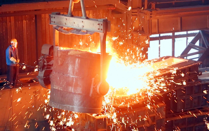 鐵水緩緩注入模型