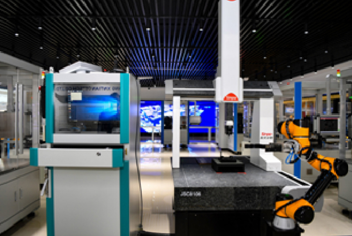 新天自動化檢測線結合先進的檢測技術和自動化技術,具有影像式、接觸式、線激光、3D激光、瑕疵檢測等多樣化的檢測方式,由協作機器人進行工件抓取。各分工站可以單獨運行檢測分檢系統,能滿足客戶多樣化的檢測需求。可對各個工站運行狀態進行仿生模擬,使用較為超前的“數字雙生3D”系統展現各個工站的運行狀況,能實時傳輸檢測結果,進行大批量的數據采集、存儲和分析。系統還可以對自動化檢測環節中產生的檢測數據,如標準值、設置的公差帶、檢測結果等進行整理。客戶通過大量的數據分析,可以及時了解生產加工環節的狀態。