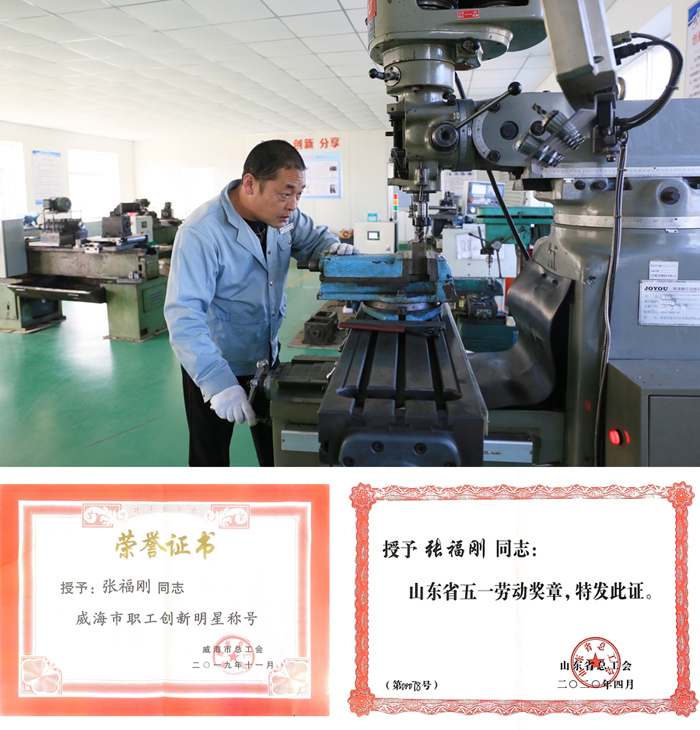 以勞模創新工作室為平臺和陣地,工作室一批技術骨干脫穎而出,公司原數字化車間主任、現設備處經理高永生,榮獲山東省富民興魯勞動獎章、威海市勞動模范、威海工匠等榮譽稱號;實驗室主管張福剛榮獲山東省五一勞動獎章、威海市職工創新明星等榮譽稱號;工程部部長王洪濤榮獲威海工匠榮譽稱號,工作室其他成員榮獲威海市職工技術創新成果、金點子獎近10項。