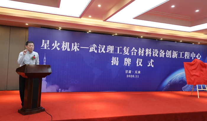隨著復(fù)合材料纖維纏繞技術(shù)的快速發(fā)展,航天、航空、國防和民用工業(yè)等領(lǐng)域?qū)w維復(fù)合材料纏繞設(shè)備的需求迅速增加,對纖維纏繞設(shè)備的精度、生產(chǎn)效率和柔性化要求也不斷提高,迫切需要解決復(fù)合材料成型加工設(shè)備缺乏關(guān)鍵技術(shù)支撐的瓶頸問題。11月26日,星火機(jī)床-武漢理工復(fù)合材料設(shè)備創(chuàng)新工程中心揭牌儀式在甘肅天水舉行,中國機(jī)床工具工業(yè)協(xié)會執(zhí)行副理事長郭長城出席儀式并致辭。