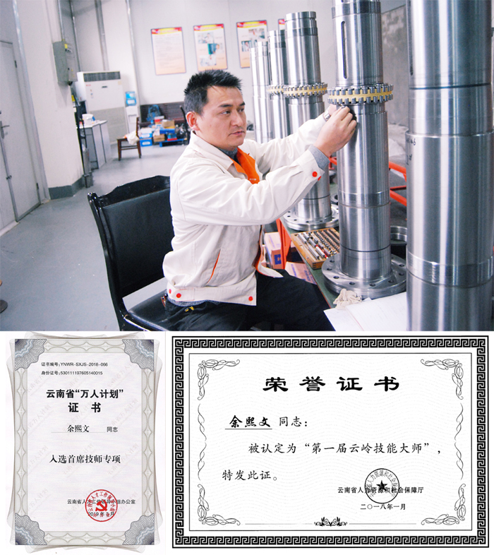 張松榮獲“云南省勞動模范”榮譽稱號;余熙文、張松2人榮獲云南省第一屆“云嶺技能大師”稱號;計思遠、李金偉、王光祥、趙學富、朱瑞林5人榮獲第一屆“云嶺技能工匠”;趙學富獲得第四屆“昆明市優秀技術能手”;余熙文獲得“昆明市五一勞動獎章”;張松、余熙文、王光祥入選萬人計劃“首席技師”專項;王光祥獲得“春城首席技師”。
