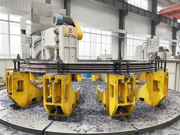 據了解,工大數控所產數控成形銑齒機克服了傳統設備在加工大齒輪時的不足,加工精度和效率有所提升,可滿足超大齒輪加工范圍,助力海上風力發電、大型工程機械和盾構機等領域對國產關鍵基礎件的加工需求。而數控齒輪復合倒角機可實現齒形齒向倒角,提升倒角精度,有效降低淬火裂痕,減小齒輪邊緣接觸效應,提高了齒輪的嚙合質量和使用壽命。同時,工大數控還開發了用于超大主軸測試的試驗臺裝置,可以對回轉支承件的動靜態能力、疲勞壽命、磨損、齒輪彎曲疲勞等性能進行測試。