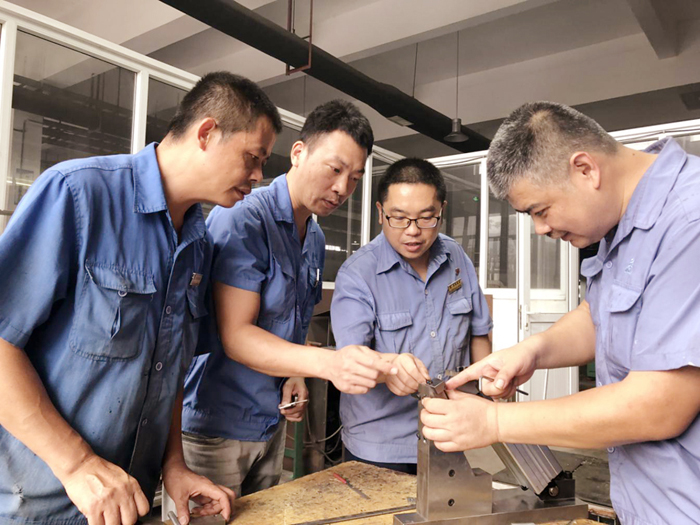 工作室定期開展授課教徒傳授技藝等培訓及實操訓練,已有5名員工因技能提升而被晉升為高級鉗工。開展“技術攻關”活動,鼓勵員工對產品研發(fā)創(chuàng)新、工藝技術改進等方面提建議、獻良方。近一年里,工作室成員提出合理化建議25條,實施技術創(chuàng)新、小改小革項目15項,節(jié)約成本約25萬元。助力企業(yè)科技項目的實施,積極參與智能工廠項目建設、全自動化智能化檢測單元系列產品的研制及產業(yè)化。