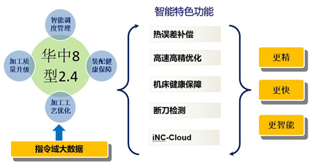 華中數控在華中8型高性能數控系統的基礎上,基于云計算、大數據、CPS等單元技術,利用控制信息、傳感信息、網絡信息,實現了數控設備的運行、加工、操作和編程等環節的智能化,開發了數控系統遠程監控、工藝優化、健康保障、斷刀監測等智能化功能。
