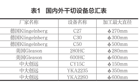 到目前為止,YKA2260機型已經發展到第三代產品,客戶遍布大江南北,湖南中大創遠數控裝備有限公司也成為了國內螺旋錐齒輪設備制造的佼佼者。美國Gleason、德國Klingelnberg和中大創遠產品的主要加工范圍如表1所示。