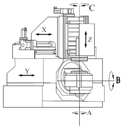 A:工件主軸 B:回轉臺主軸 C:刀具主軸