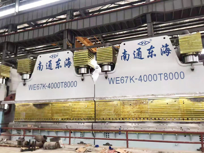 南通東海機床制造集團有限公司在集30年小型剪折機械生產經驗的基礎上,轉型開發特大型鍛壓機床,單臺凈重100噸以上,以“大”取勝。其中QC11Y-20×13000 剪板機和WE67K-4000/14000折彎機單臺銷售額在300萬元以上。近年來,公司與濟南鑄造鍛壓機械研究所和某高校聯合開發的QC11Y -16X12000 大型剪板機、WE67K-1000/7000大型數控折彎機、W11S-60X3000上輥萬能卷板機成為市場的搶手貨。