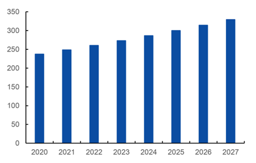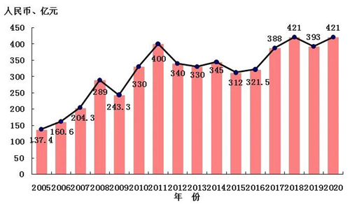 全球金屬切削工具市場規模達到237.3億美元,預計在20202027年間將保持4.8%年復合增長率,并在 2027年達到 329.5 億美元。中國刀具消費規模在20052020年間保持7.75%年復合增長率,2020年約為421億元。考慮制造業轉型升級趨勢不改,“十四五”期間刀具消費市場有望迎來進一步增長,邁上新的臺階。