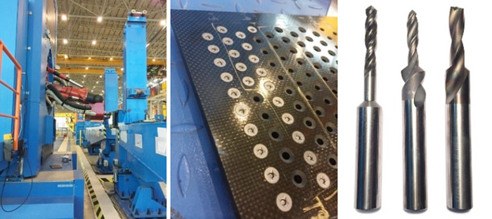 刀具采用硬質合金制造并配以金剛石涂層及獨特鉆形設計,實現高強度、高耐磨性和低切削力,在航空、航天復合疊層材料加工中,可有效應對纖維化碎屑不容易排屑、散熱,以及刀具易磨損的現象。該刀具可實現鉚釘孔的鉆、擴、鉸、锪窩一次成形。