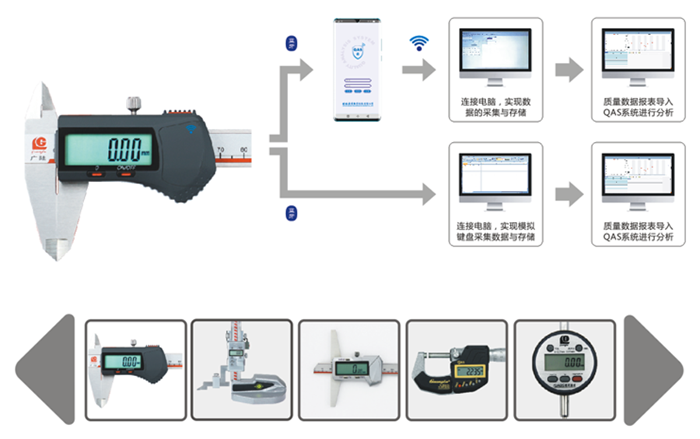 利用帶藍(lán)牙技術(shù)的工業(yè)測(cè)量產(chǎn)品,通過移動(dòng)端APPPC端應(yīng)用軟件、WIFI網(wǎng)絡(luò)、云存儲(chǔ)、云計(jì)算和大數(shù)據(jù)分析等技術(shù),實(shí)現(xiàn)工業(yè)產(chǎn)品質(zhì)量數(shù)據(jù)的采集、傳輸、存儲(chǔ)和應(yīng)用等功能,實(shí)現(xiàn)質(zhì)量數(shù)據(jù)的數(shù)字化管理和價(jià)值創(chuàng)新。徹底告別手動(dòng)質(zhì)量報(bào)告時(shí)代的低效率與高成本;更便捷的數(shù)據(jù)采集與應(yīng)用功能,高效實(shí)現(xiàn)質(zhì)量大數(shù)據(jù)計(jì)算與價(jià)值賦能;更清晰、透明和可追溯的質(zhì)量管理模式,創(chuàng)新傳統(tǒng)工業(yè)質(zhì)量管理流程。