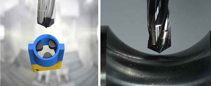 針對平底加工需求,推出了3刃平底刀頭F3P,應用于高效加工螺釘沉頭孔、平底孔、斜面鉆孔等。