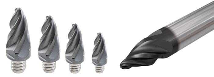 全新推出的整體硬質合金鼓形錐度銑刀分為兩種,一種ETB系列的錐度夾角40°,錐度圓弧半徑250mm,適用于曲面曲率較小的場合,有D8、D10、D12三種規格可選。另一種EOB系列的錐度夾角在14°-18°之間,錐度圓弧半徑90mm左右,適用于曲面曲率較大的場合,有D8、D10、D12三種規格可選。