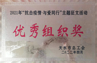 近日,天水市總工會組織開展了“抗擊疫情?與愛同行”主題征文活動,天水鍛壓機床(集團)有限公司榮獲優秀組織獎,公司工會主席白峰參選的作品《疫情因戰斗而止》獲得主題征文二等獎,朱寶維的作品《疫霾再重懼紅日,“霞”舒“云”卷千聘婷》獲得優秀獎。