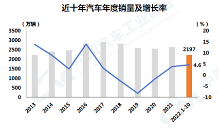 1-10月,汽車產銷分別達到2224.2萬輛和2197.5萬輛,同比增長7.9%4.6%,增速較1-9月分別擴大0.50.3個百分點。