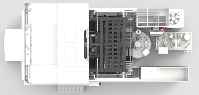 機床與桁架自動線等運輸執行機構進行連線加工,采用桁架機械手結構,進行了頂部上下料的結構布局,同時從系統通信、加工調度、維護保養等各個方面進行協調,以提升機床組線的加工效率和產品的穩定性。該加工自動線主要適用于箱體類零件的復雜孔系及表面加工,移動部件可實現高速運動,動態響應快,大幅提高機床的生產效率,是面向“中國制造2025”的高端裝備。