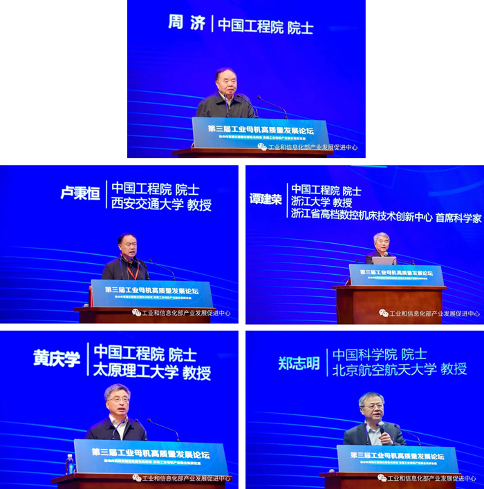 論壇以“推動(dòng)向高端化智能化綠色化轉(zhuǎn)變 實(shí)現(xiàn)工業(yè)母機(jī)產(chǎn)業(yè)融合集群發(fā)展”為主題,共同探討工業(yè)母機(jī)產(chǎn)業(yè)科技創(chuàng)新發(fā)展的路徑,分析重點(diǎn)領(lǐng)域用戶發(fā)展需求,交流工業(yè)母機(jī)領(lǐng)域最新進(jìn)展,推動(dòng)科技成果轉(zhuǎn)化。五位院士聚焦工業(yè)母機(jī)產(chǎn)業(yè)現(xiàn)實(shí)和未來發(fā)展,分別做了主題報(bào)告,為工業(yè)母機(jī)高質(zhì)量發(fā)展定標(biāo)引航。