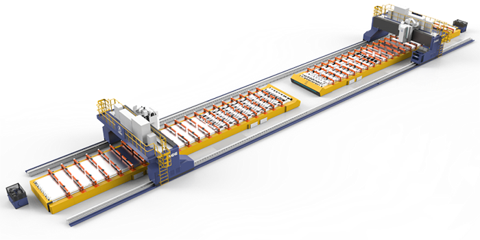超長型材智能攪拌摩擦焊成套裝備主要用于動車組及城軌車輛長地板部件的攪拌摩擦焊接,且具備圓弧頂蓋、動車組長側墻板等部件的焊接能力。設備采用雙龍門、雙工位結構型式,單套龍門系統配有X、Y、Z、A四個數控坐標軸,龍門沿導軌移動,溜板沿橫梁導軌移動、滑枕沿溜板導軌垂直移動和焊接主軸頭繞X軸旋轉運動。設備控制系統可實現三軸聯動控制。