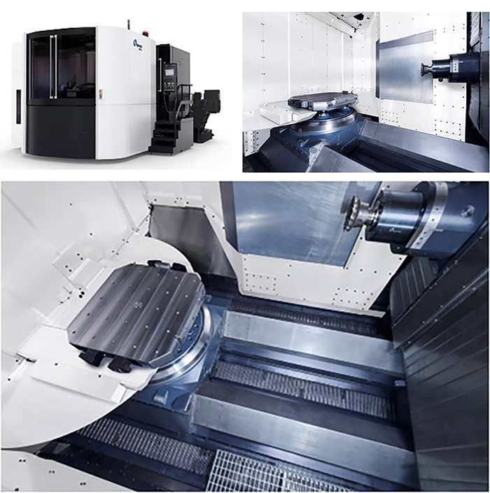 該產(chǎn)品用于大型半導體設(shè)備和各種大型產(chǎn)業(yè)機器(真空泵、壓縮機、發(fā)電機等)的零部件加工,托盤尺寸為□800mm。機床X、Y、Z行程為1400mmX1200mmX1350mm,B軸行程360度,最大工件尺寸(直徑X高)1450mm X1450mm,最大工件承重2000kg。