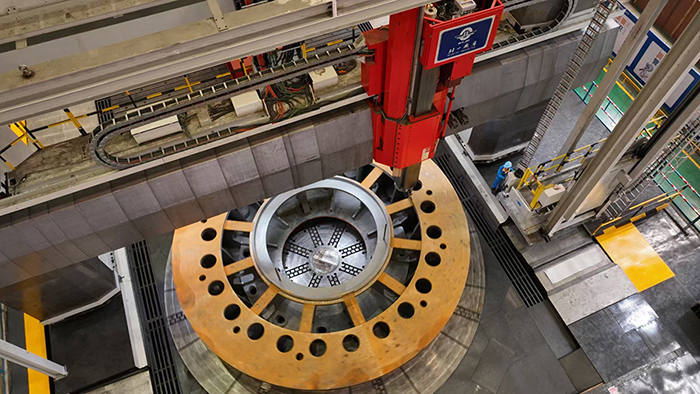 此次成功投產的北一機床XKA28120×200超重型數控龍門車銑復合機床重達1160噸,可實現寬度12米、長度20米、高度7米的大型框架類零件,以及直徑12米的回轉類零件車銑復合加工,機床配備了國內先進的3米行程大截面機床滑枕,機床配置寬度為11米的工作臺刷新了北一機床工作臺制造紀錄。