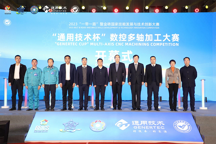 12月12日,2023“一帶一路”暨金磚國家技能發展與技術創新大賽之“通用技術杯”數控多軸加工大賽在通用技術大連機床開賽。