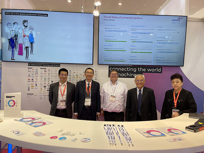 2024年9月10日上午,協會執行副理事長王黎明、副秘書長穆東輝、國際部主任張菁、行業發展部魯春朋一同前往Umati展臺交流。Brooths博士講解了Umati本次參展的主題,并親自演示NC-Link連接的4臺機床,表示希望加快推進合作,并就下一步工作計劃進行了溝通。