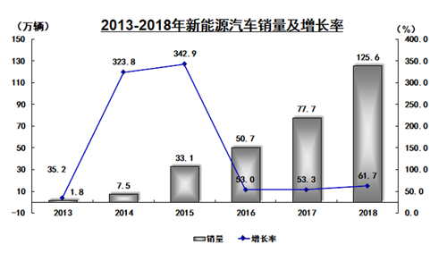2018年1-12月,新能源汽車產(chǎn)銷分別完成127.05萬輛和125.62萬輛,比2017年同期分別增長59.92%和61.74%。其中,純電動汽車產(chǎn)銷同比增長47.85%和50.83%,插電式混合動力汽車產(chǎn)銷同比增長121.97%和117.98%。