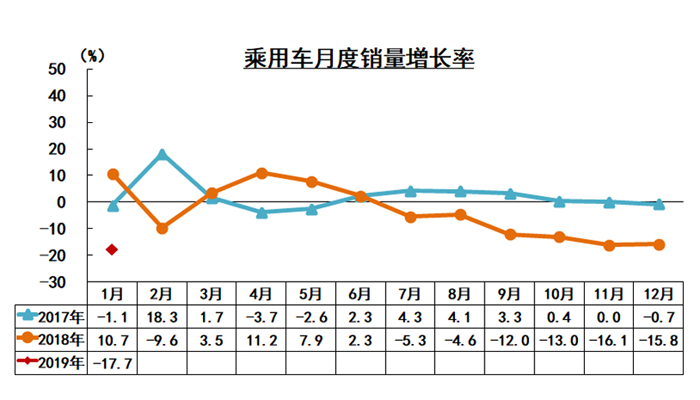 中國汽車工業(yè)協(xié)會(huì)統(tǒng)計(jì)信息顯示,2019年1月,我國汽車產(chǎn)銷比上月均呈下降,商用車降幅更為明顯;與上年同期相比,汽車產(chǎn)銷呈較快下降,乘用車降幅高于行業(yè)。