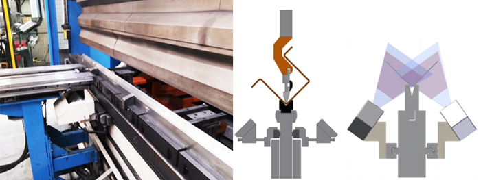 1)通過激光在線檢測工件回彈后的折彎角度;(2)受力檢測系統(tǒng)自動計算折彎回彈量;(3)件根據(jù)下模寬度的不同可自動調整進深;(4)通過閉環(huán)的激光角度在線測量系統(tǒng),保證折彎成品率達到99.5%以上。