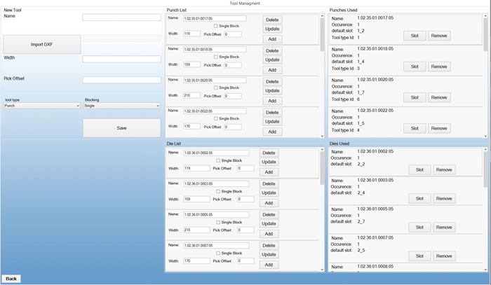 1)通過附件的圖形化界面,用戶能夠立即看到整個系統(tǒng)的現(xiàn)狀;在該界面的右邊,有一個圖形表示模具的狀態(tài),對這些模具當前的位置進行分區(qū)。(2)整個界面包括折彎上模區(qū)域、折彎下模區(qū)域和模具庫;模具的展示遵循模具本身的尺寸,被夾持的工位位置。(3)上下模用不同顏色區(qū)分;在該界面的左上邊,有對折彎機上所裝模具的詳細描述。兩個部分:一個是解釋上模,一個是解釋下模,通過識別碼和現(xiàn)有位置來描述被夾持的模具。